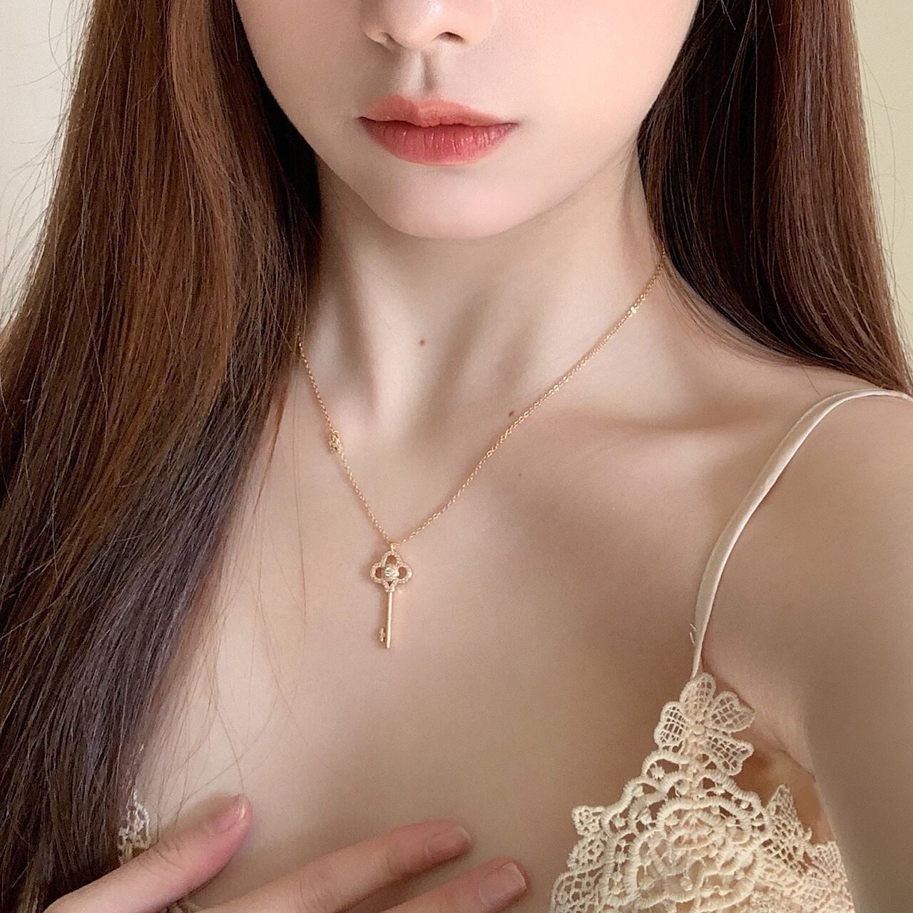 ペンダント おしゃれ キラキラ 鍵型 ネックレス