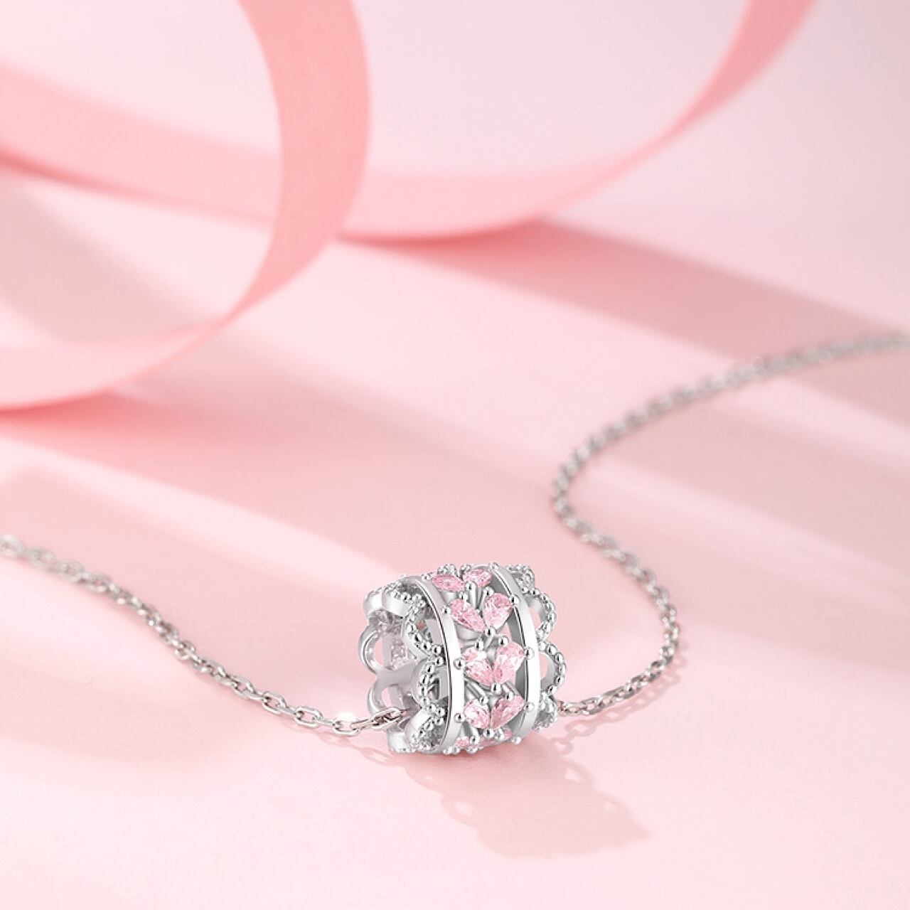ペンダント かわいい コリレース ピンク ハート おしゃれ シルバー ネックレス