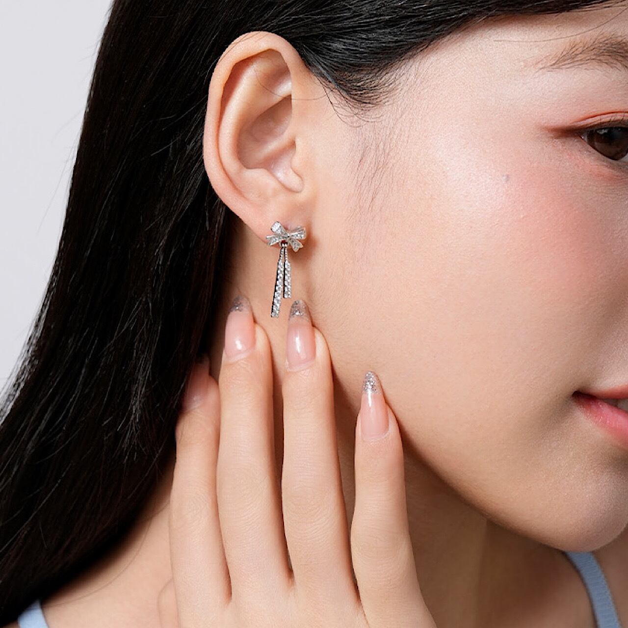 おしゃれ キラキラ リボン 結び目 シルバー ピアス
