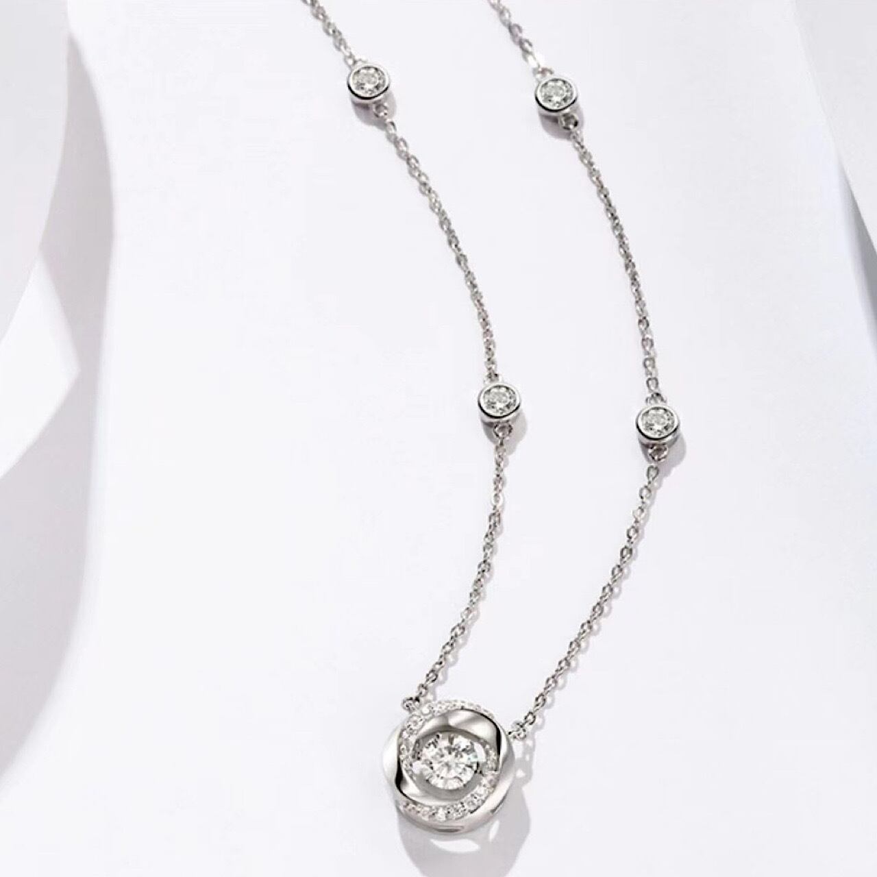 ペンダント おしゃれ キラキラ 1粒 ダイヤモンド シルバー ネックレス[110]